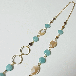 天然石アマゾナイトとマザーオブパールのネックレスです。